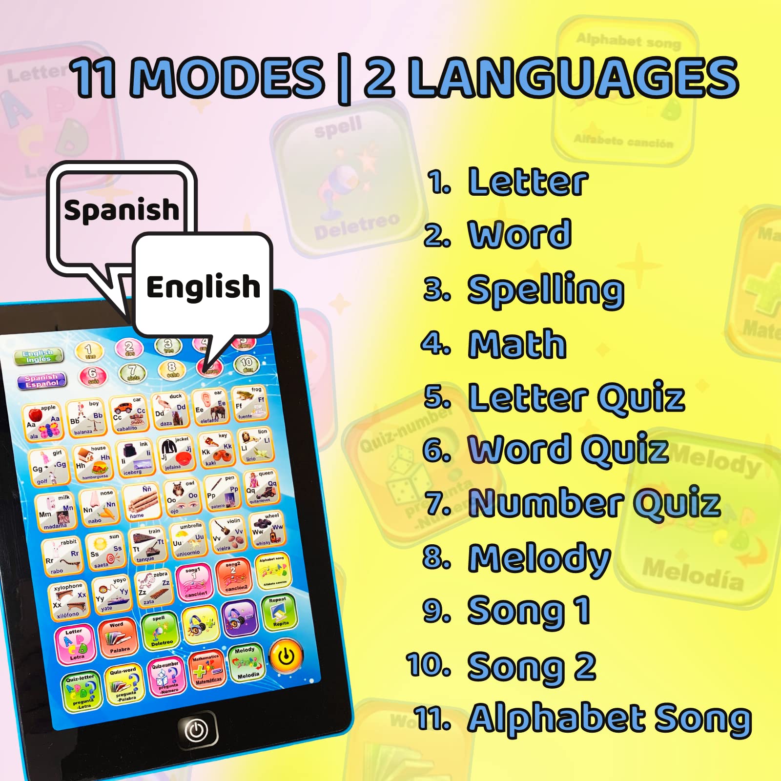 Amazon Com Zeenkind Bilingual English Spanish Learning Tablet Toy Juguetes Para Ninas Ninos Aprender Espanol Y Ingles Educational Toys For Kids Toddlers Baby To Learn Alphabet Abc Numbers Words Music Toys